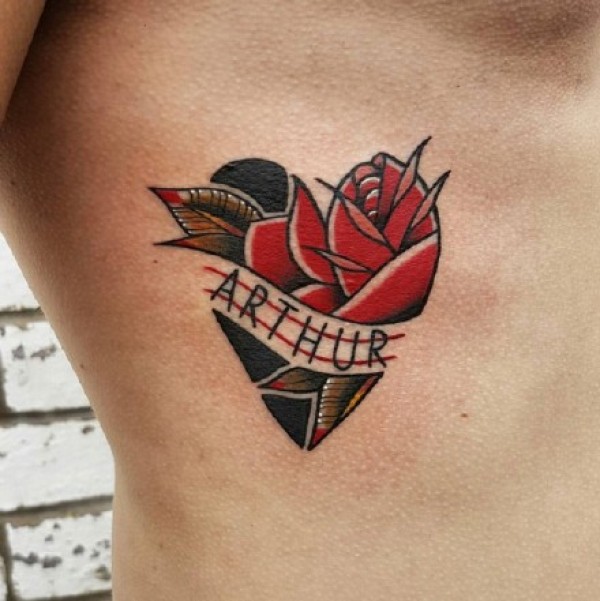 女生锁骨下黑灰素描点刺技巧创意比心纹身图片