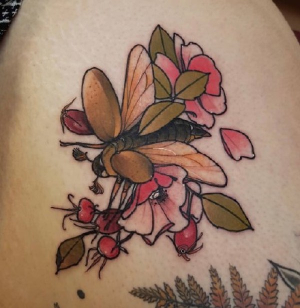 性感花朵纹身--女性大腿侧部性感的花朵纹身