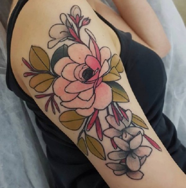 肩花纹身--一组适合肩部的黑灰肩花纹身图案欣赏