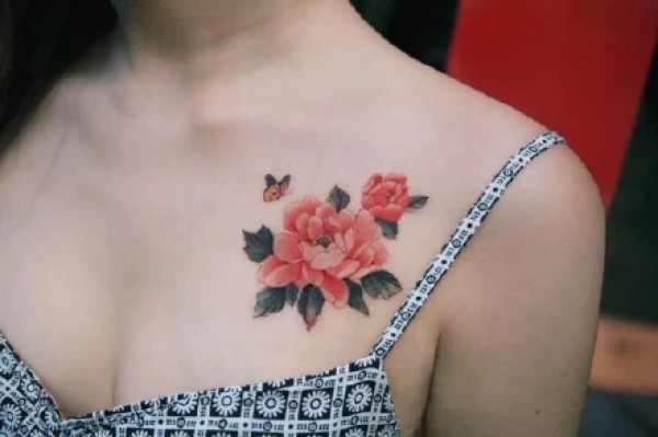红色花朵纹身:漂亮的一组红牡丹等花卉纹身图案