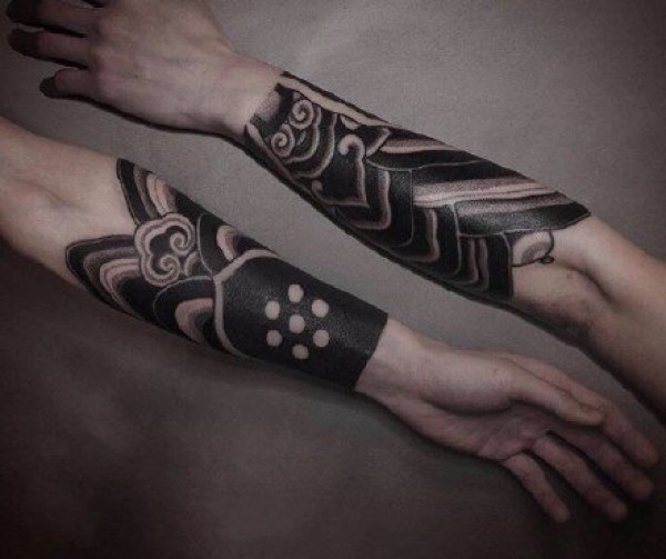 25款男性黑色手臂线条纹身点刺技巧半甲纹身图案