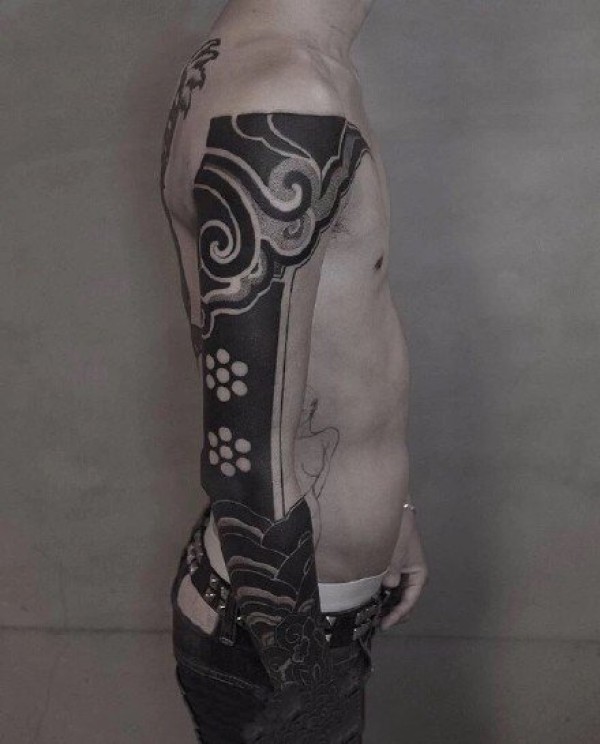 黑色祥云纹身:中国风格的一组黑色祥云等纹身图案