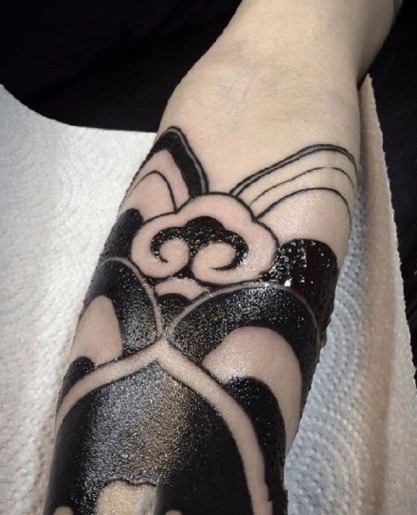 黑色祥云纹身:中国风格的一组黑色祥云等纹身图案