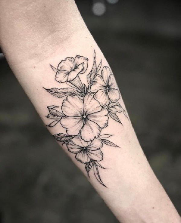 纹在手臂胳膊上的黑灰素花花卉纹身图案欣赏