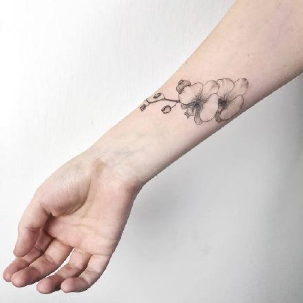 缠绕在小手臂手腕上的花藤纹身图案作品