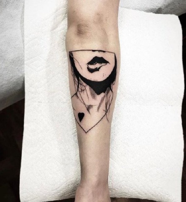 心脏纹身图案 女生手臂上黑灰纹身心脏纹身图案