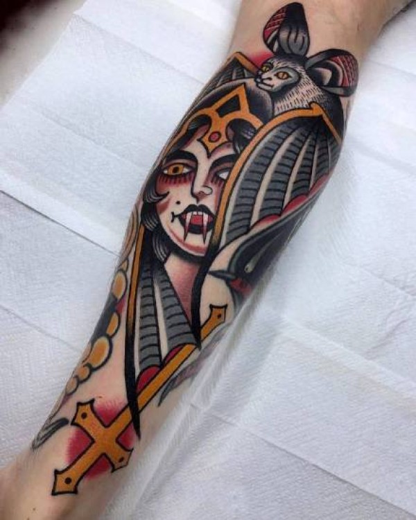 很有恐怖惊悚感觉的暗红色纹身作品图片