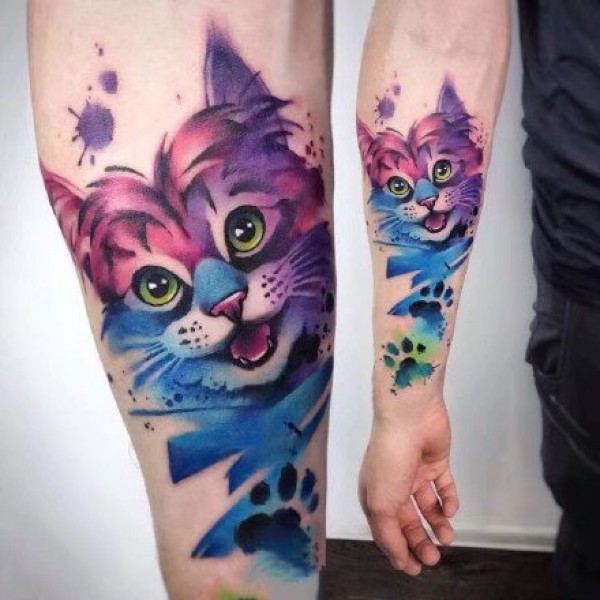 蓝色写实动物纹身:蓝色调的一组动物水彩色写实纹身图案