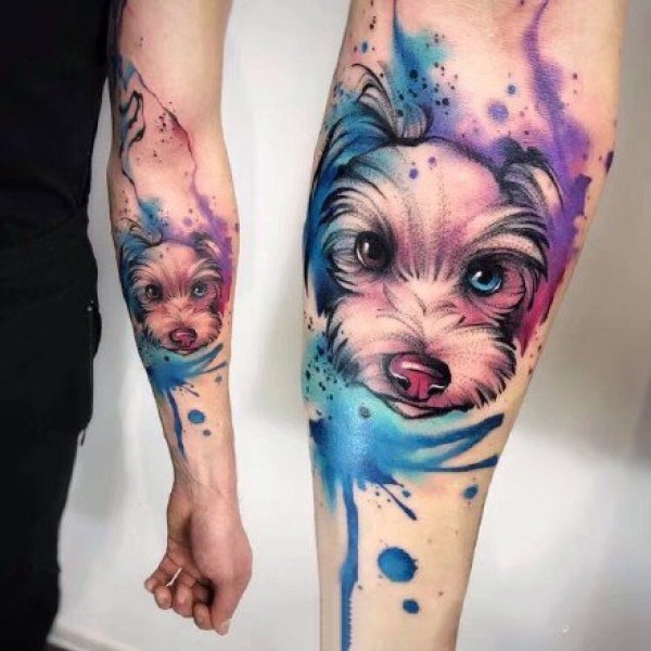 蓝色写实动物纹身:蓝色调的一组动物水彩色写实纹身图案