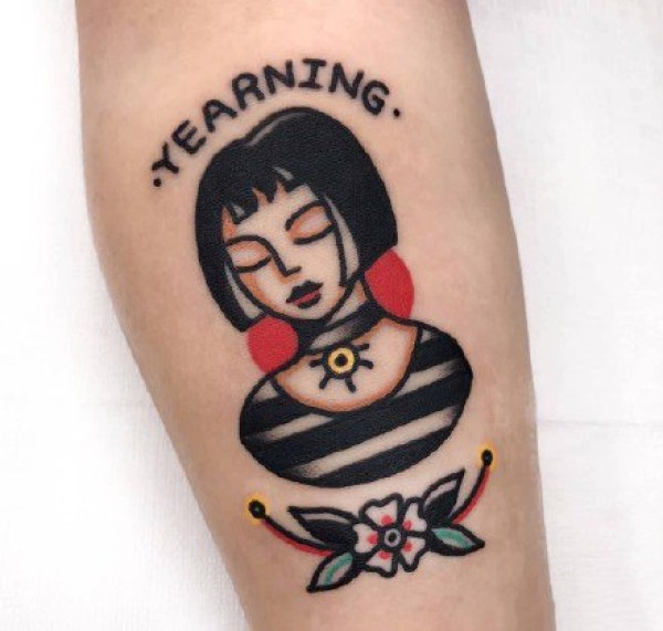 oldschool小女孩纹身:oldschool风格的一组小菇娘女孩纹身图案