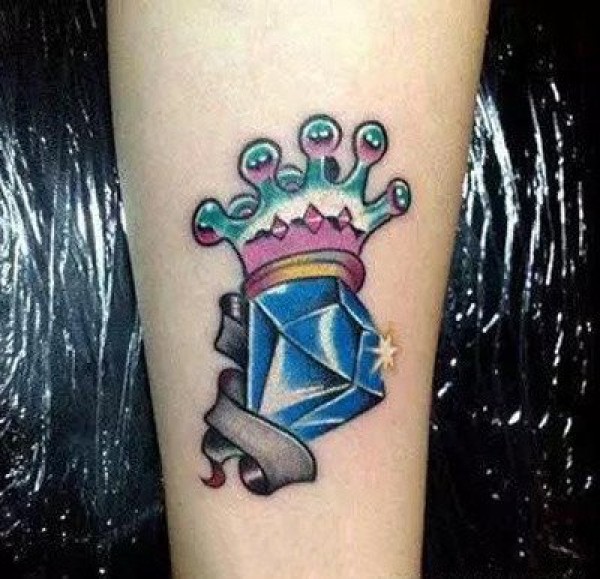 皇冠钻石小纹身:钻石和皇冠搭配的小彩色纹身图案