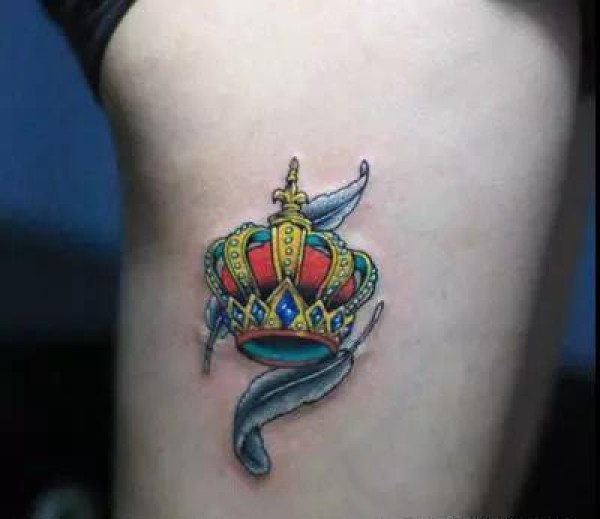 皇冠钻石小纹身:钻石和皇冠搭配的小彩色纹身图案