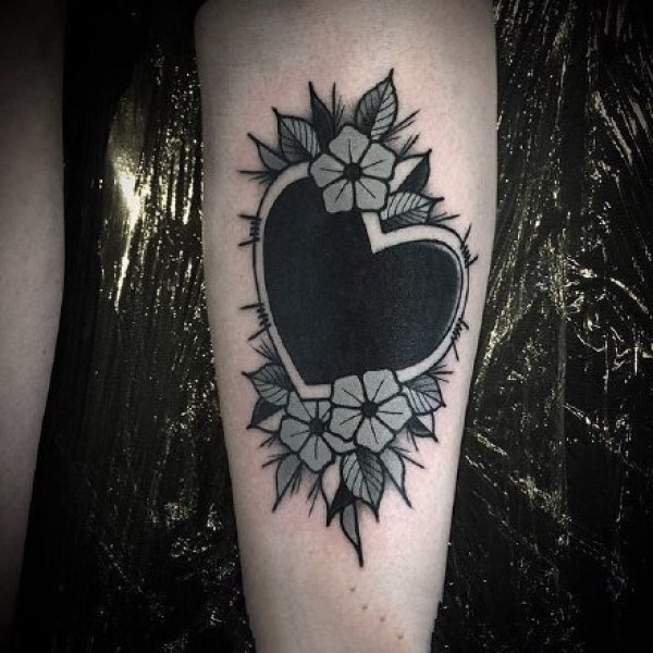 心脏纹身图案 女生手臂上黑灰纹身心脏纹身图案