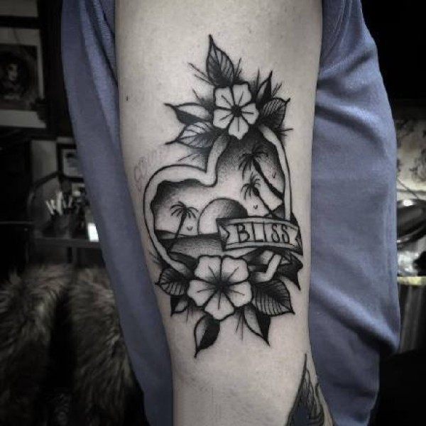 心脏纹身图案 女生手臂上黑灰纹身心脏纹身图案