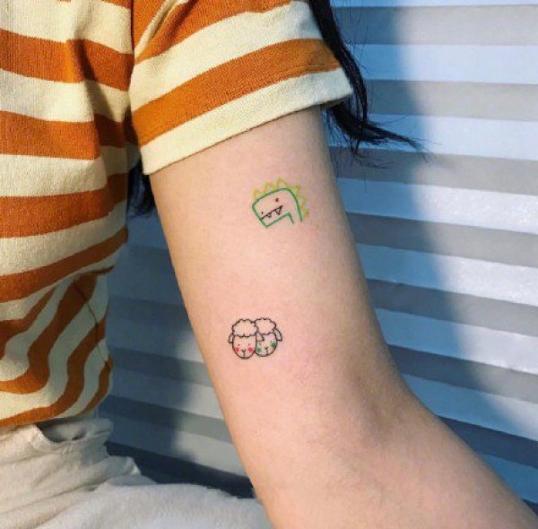 很简单的一组小彩色可爱简约纹身小图案作品