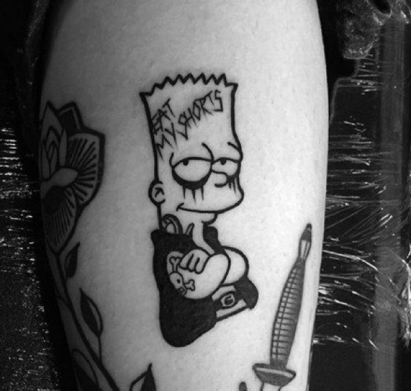 黑灰卡通纹身:9张oldschool风格的黑灰小卡通纹身图案