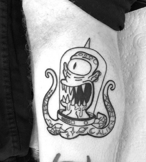 黑灰卡通纹身:9张oldschool风格的黑灰小卡通纹身图案
