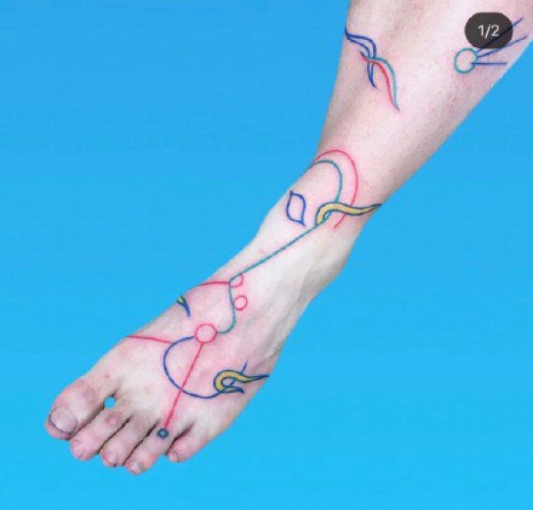 小清新涂鸦纹身:27张简约清新的小彩色涂鸦纹身图案
