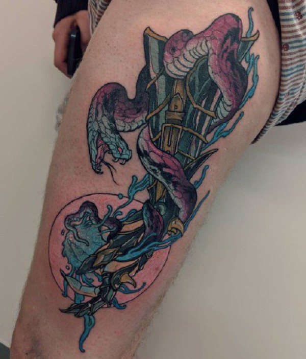 德国恐龙纹身眼镜蛇和卡通鳄鱼纹身水彩动物图案纹身