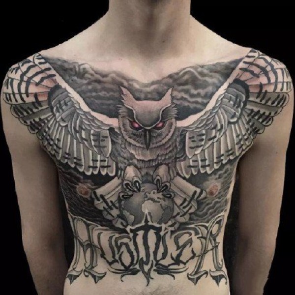 几张猫头鹰花胸纹身图案和手稿欣赏
