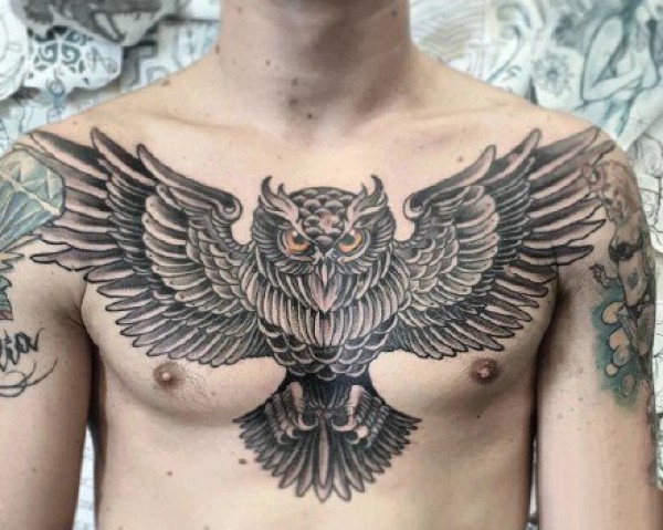 一款满背的猫头鹰纹身