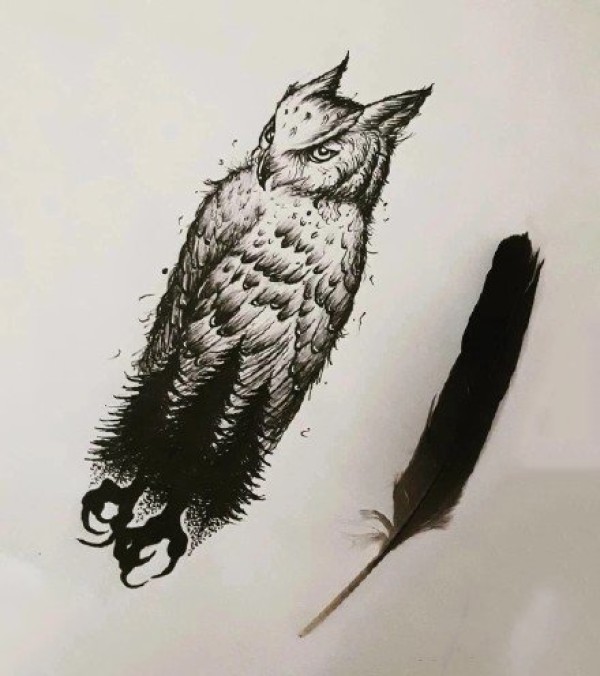 几张猫头鹰花胸纹身图案和手稿欣赏