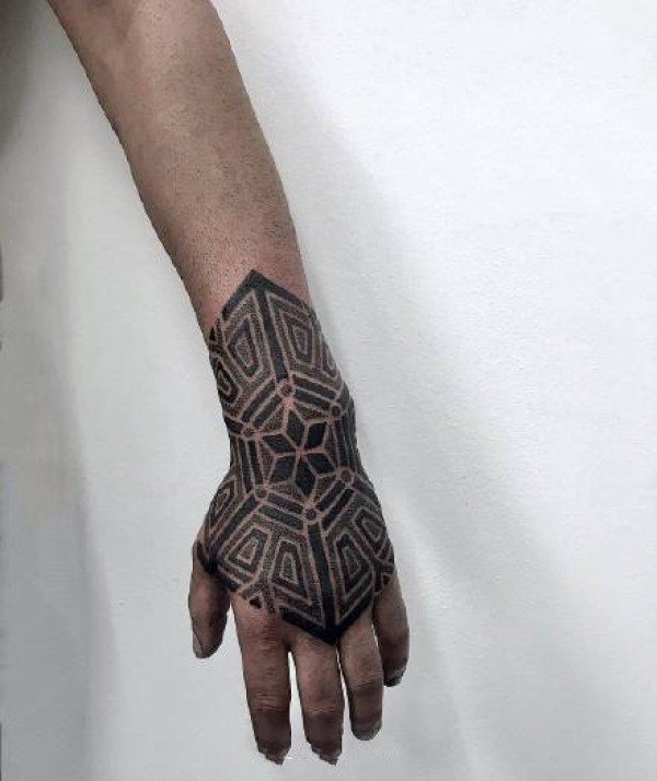 手背到小臂上的黑色点刺梵花纹身图案9张