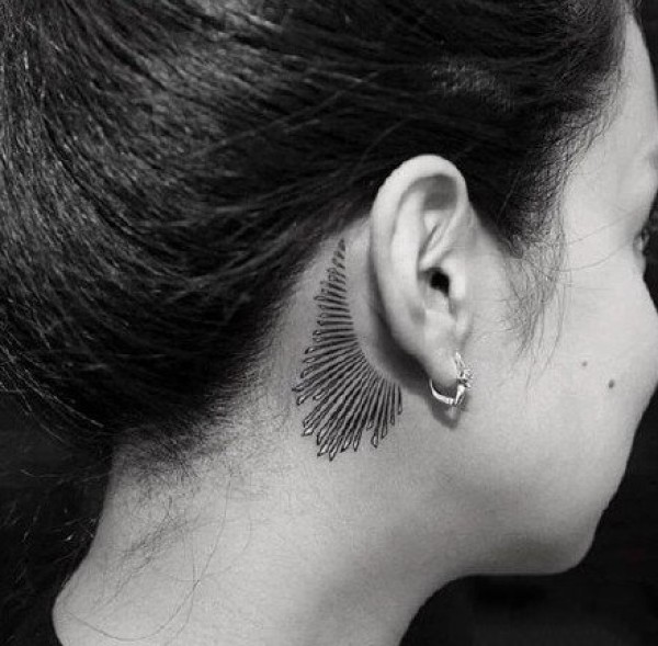 耳背纹身:适合女生纹在耳朵后面的简约小纹身图