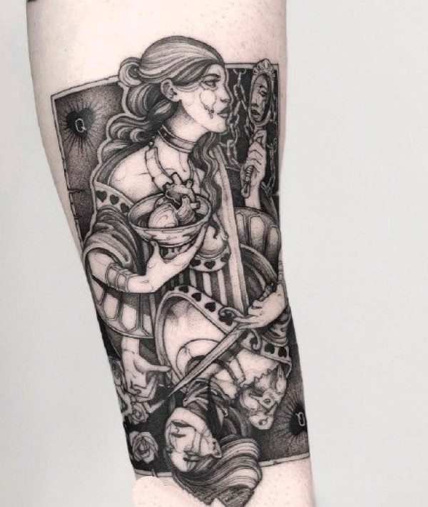 心脏纹身图案 女生手臂上黑灰纹身心脏纹身图案
