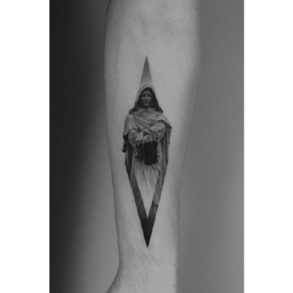 心脏纹身图案 女生手臂上黑灰纹身心脏纹身图案