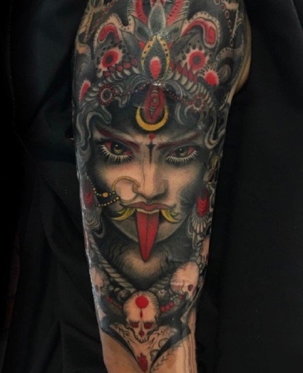 手臂人像女郎:欧美纹在胳膊上的女郎人像纹身图案