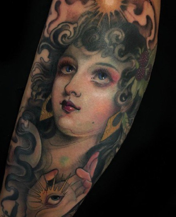 手臂人像女郎:欧美纹在胳膊上的女郎人像纹身图案