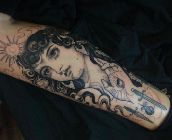 手臂人像女郎:欧美纹在胳膊上的女郎人像纹身图案