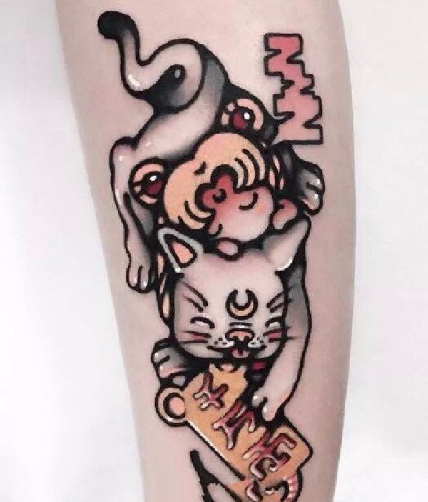 oldschool风格的拼接花臂纹身作品欣赏