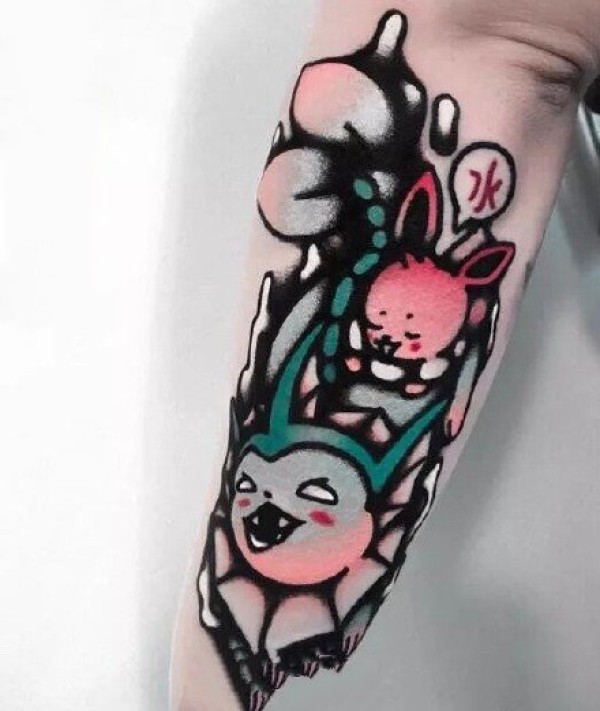女生猫咪兔子个性手臂纹身_手臂纹身图案大全_纹身图吧