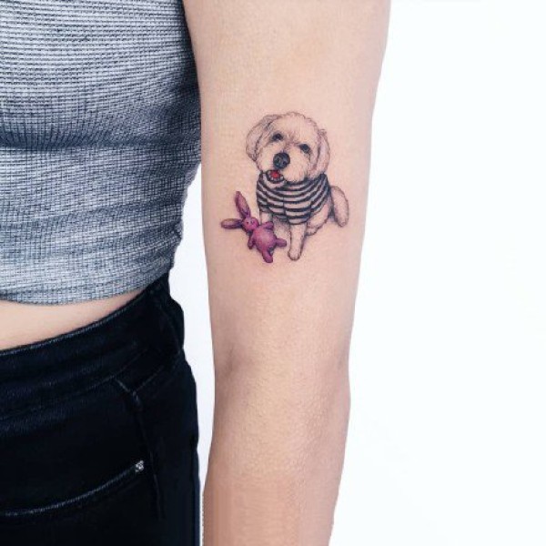 潮流纹身-色彩可爱的小猫小狗手臂纹身图片