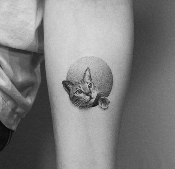 手臂上的黑色点刺小圆图纹身作品图片