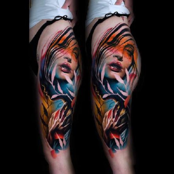 腿部纹身女 9组女性大腿侧部性感纹身作品图