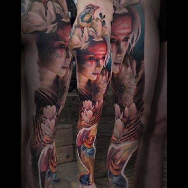 腿部纹身女 9组女性大腿侧部性感纹身作品图