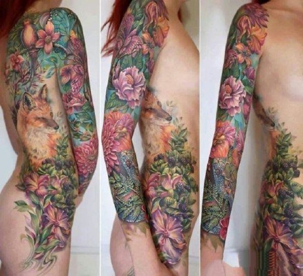 传统的一组霸气花卉大花臂纹身图案欣赏
