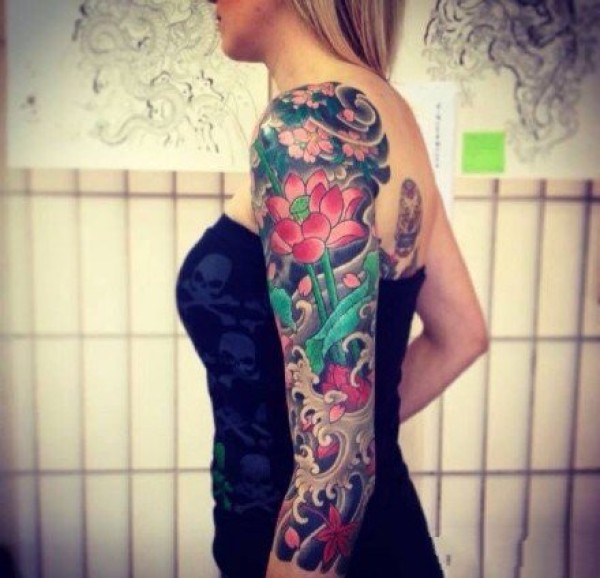 传统的一组霸气花卉大花臂纹身图案欣赏