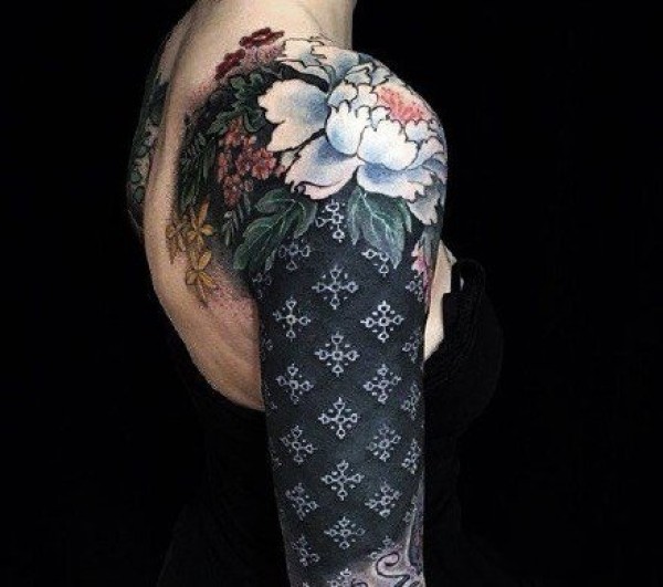 传统的一组霸气花卉大花臂纹身图案欣赏