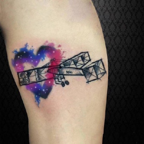 胳膊原创水彩心上钥匙纹身图案