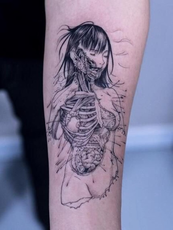 半骷髅风格等的创意女郎纹身作品图案9张