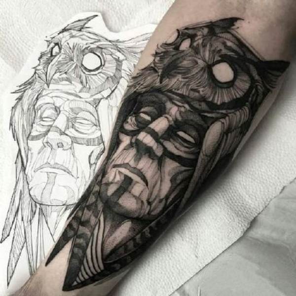 能面万媚纹身手稿_52张日式能剧面具纹身手稿图案素材欣赏