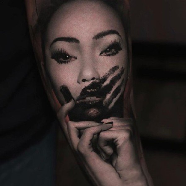 欧美黑灰写实纹身:大臂和大腿上逼真的欧美3d写实纹身图案