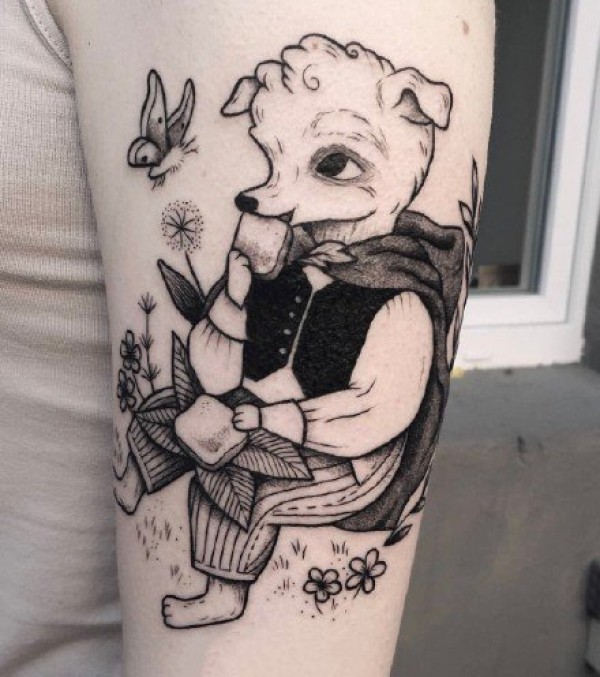 可爱的一组黑灰童趣动物单线纹身作品图案