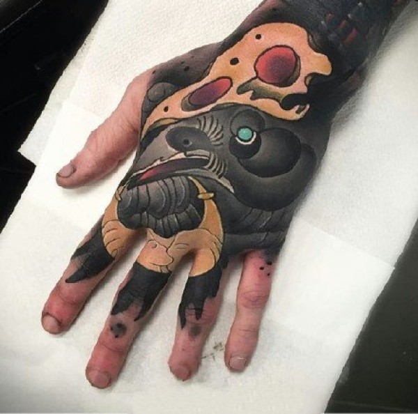 school风格的动物满手背纹身作品图案