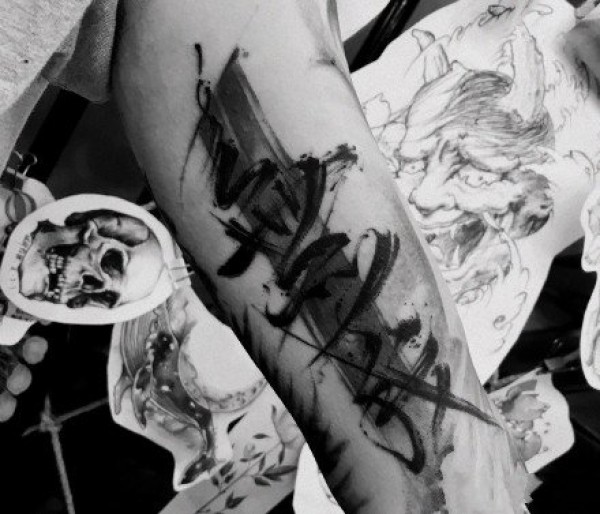 水墨汉字纹身:中国水墨风格的一组汉字纹身图案9张