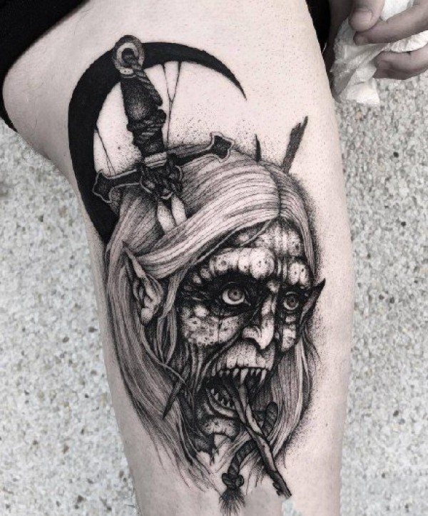 暗黑纹身图案--16张暗黑风格的手臂和腿部的纹身图案